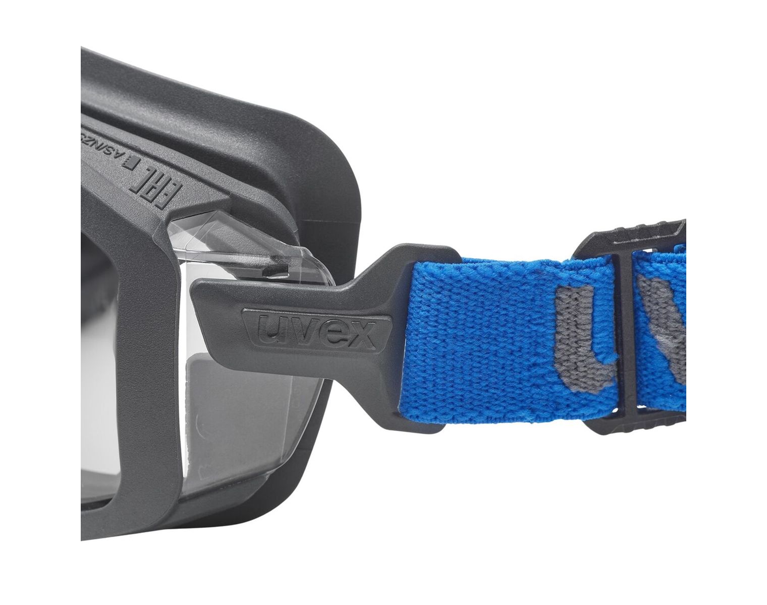 Le masque uvex i-guard+ offre une protection maximale des yeux avec un large champ de vision, une protection latérale flexible et un appui facial doux. Vitre en polycarbonate UV400, résistante aux rayures et antibuée. Sans métal et mécaniquement robuste - idéal pour les utilisations exigeantes.</br></br>Les lunettes uvex i-guard+ sont les lunettes de protection parfaites pour les professionnels d'atelier qui accordent de l'importance au confort et à la sécurité. Avec un champ de vision extra-large, des protections latérales adaptables et un appui facial souple, elles protègent efficacement de la poussière, des éclaboussures et des liquides, même lors d'interventions prolongées.</br></br>La Vitre en polycarbonate transparent est dotée de la technologie éprouvée uvex supravision, qui garantit une résistance durable aux rayures et à la buée. Grâce aux UV400, il offre une protection complète contre les rayons UV nocifs, ce qui le rend particulièrement polyvalent.</br></br>Les lunettes i-guard+ sont exemptes de métal, convainquent par leur grande résistance mécanique (B) et sont donc idéales pour les environnements de travail exigeants. La monture bleu anthracite et la vitre transparente complètent le design professionnel.