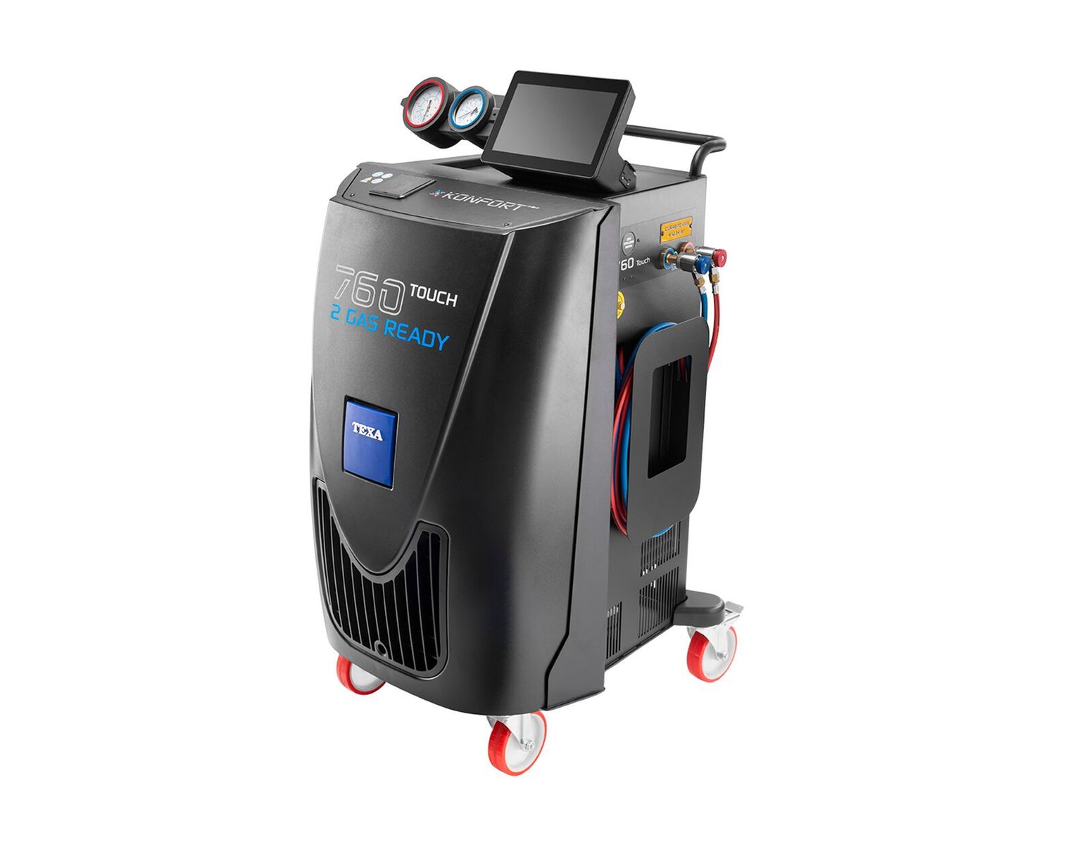 Il modello KONFORT 760 TOUCH funziona in modo completamente automatico e può essere utilizzato con il refrigerante R134a. Questo dispositivo all'avanguardia possiede tutte le caratteristiche tecnologiche della serie 700 ed è quindi approvato e raccomandato da molti costruttori di veicoli; l'intero processo di assistenza è automatico. Il Konfort 760 TOUCH è dotato di un dispositivo di blocco della scala del refrigerante.